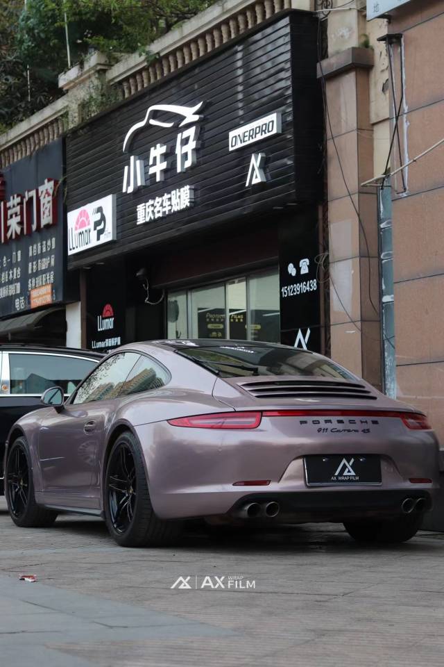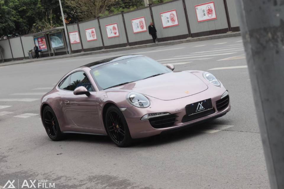 保时捷911 4S AX PET冰莓粉 #小牛仔汽车贴膜
