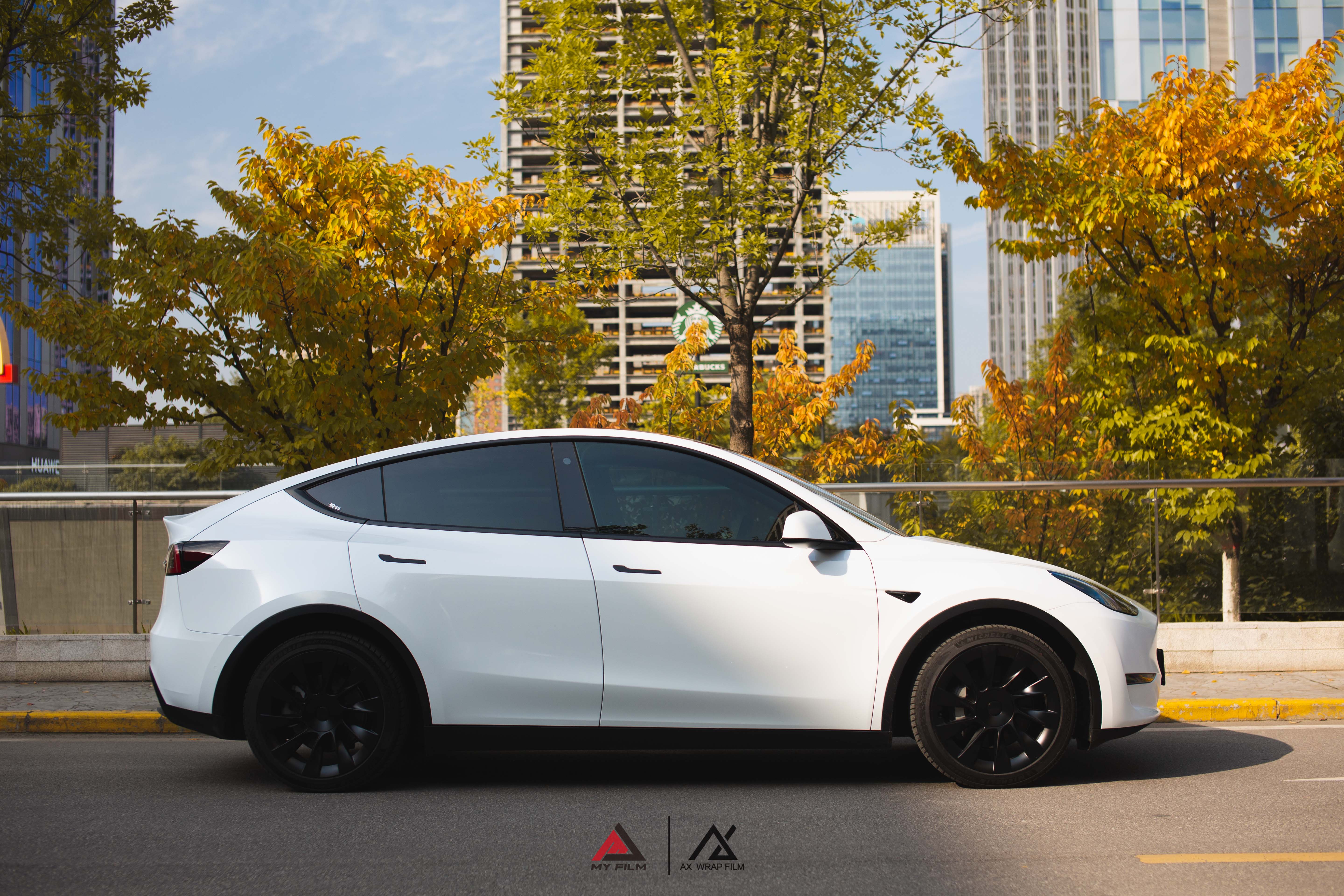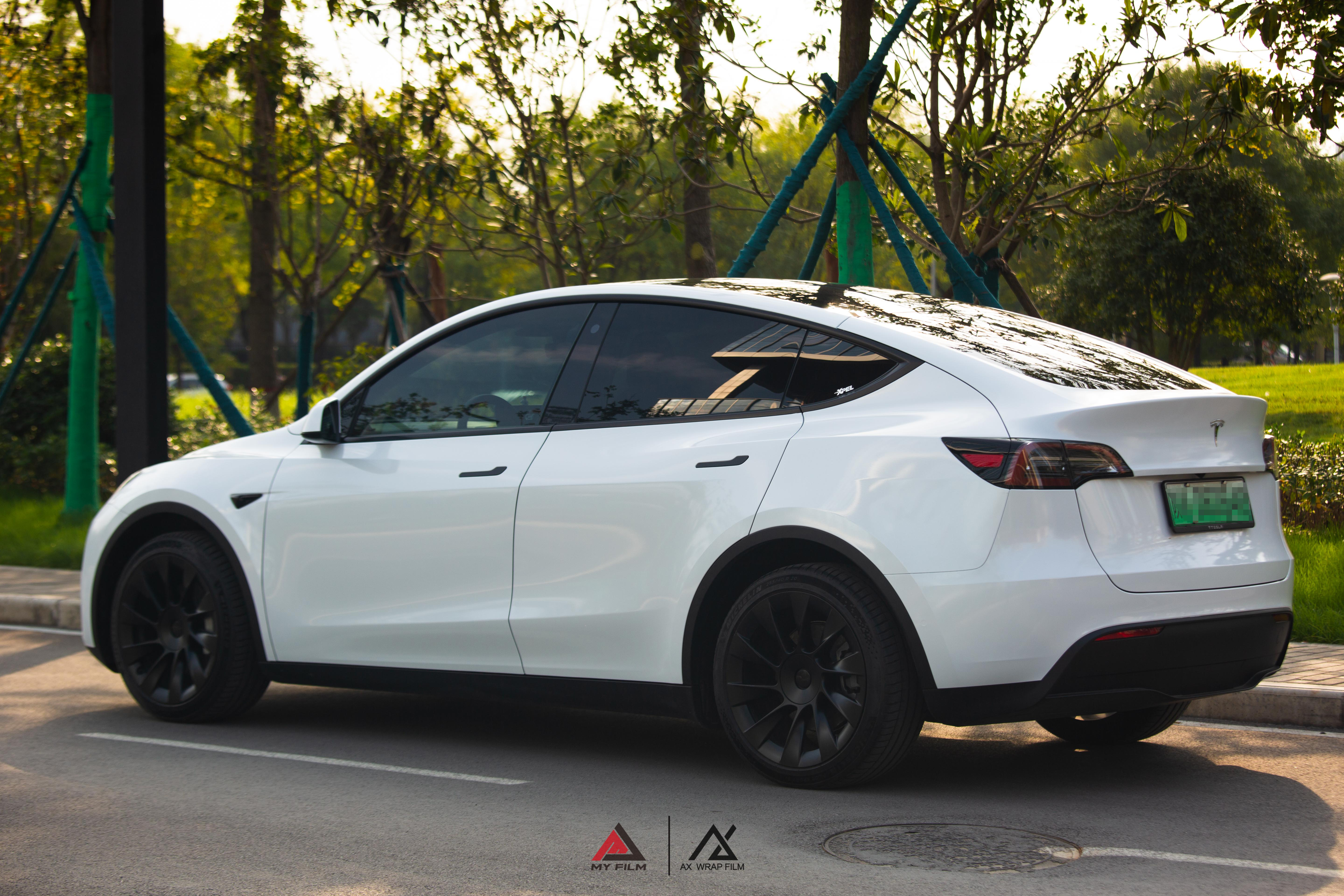 珠光摇素月 竹影乱清风 #特斯拉 model Y #AX珠光白 #AX施工作业图 #MYFILM出品 # 贴AX请认准官方授权店