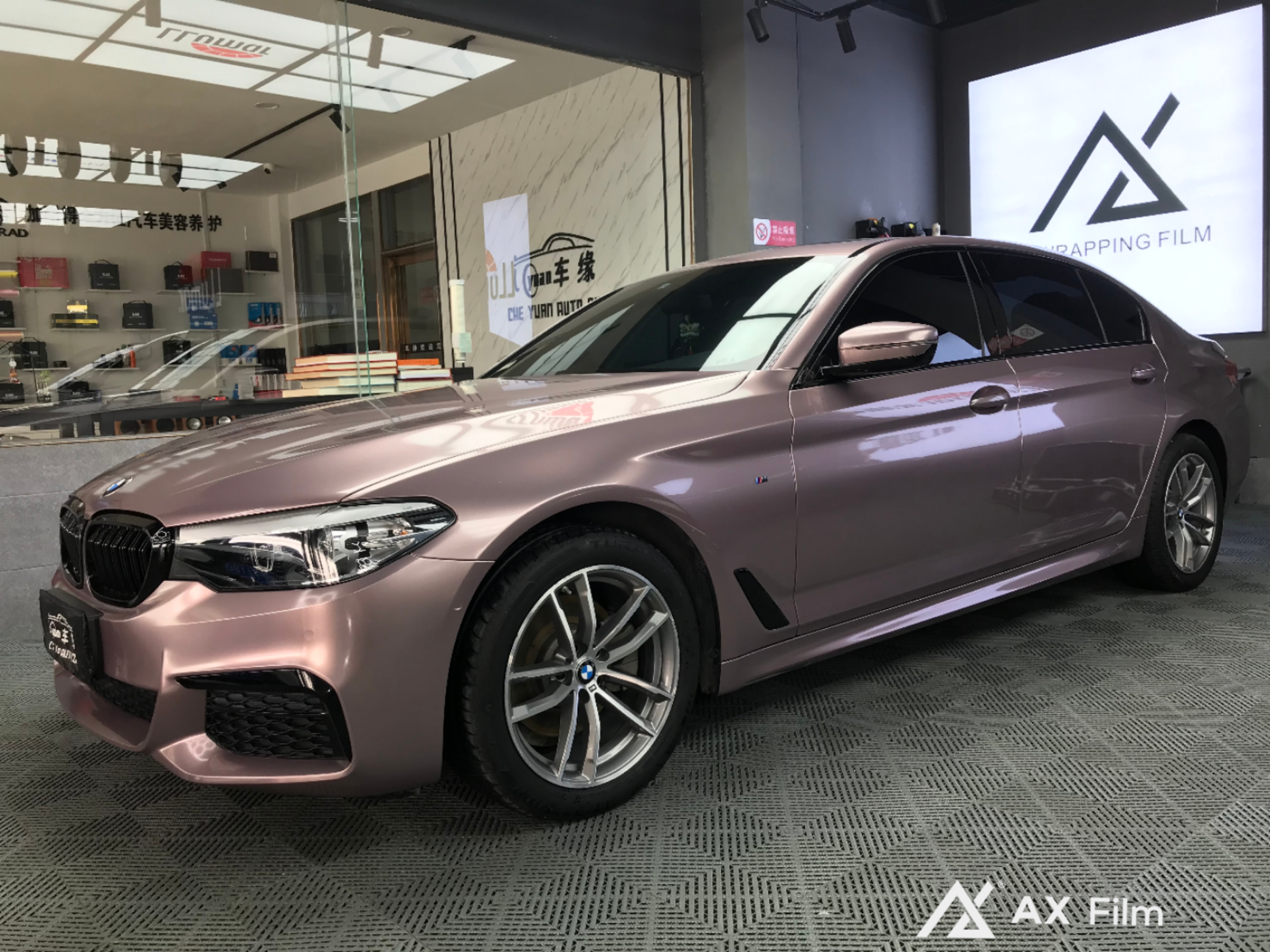 •—宝马5系 即刻焕新 •—#AX PET冰莓粉 •—#AX wrap film •—贴AX认准官方授权店 •—镇平车缘汽车公馆出品