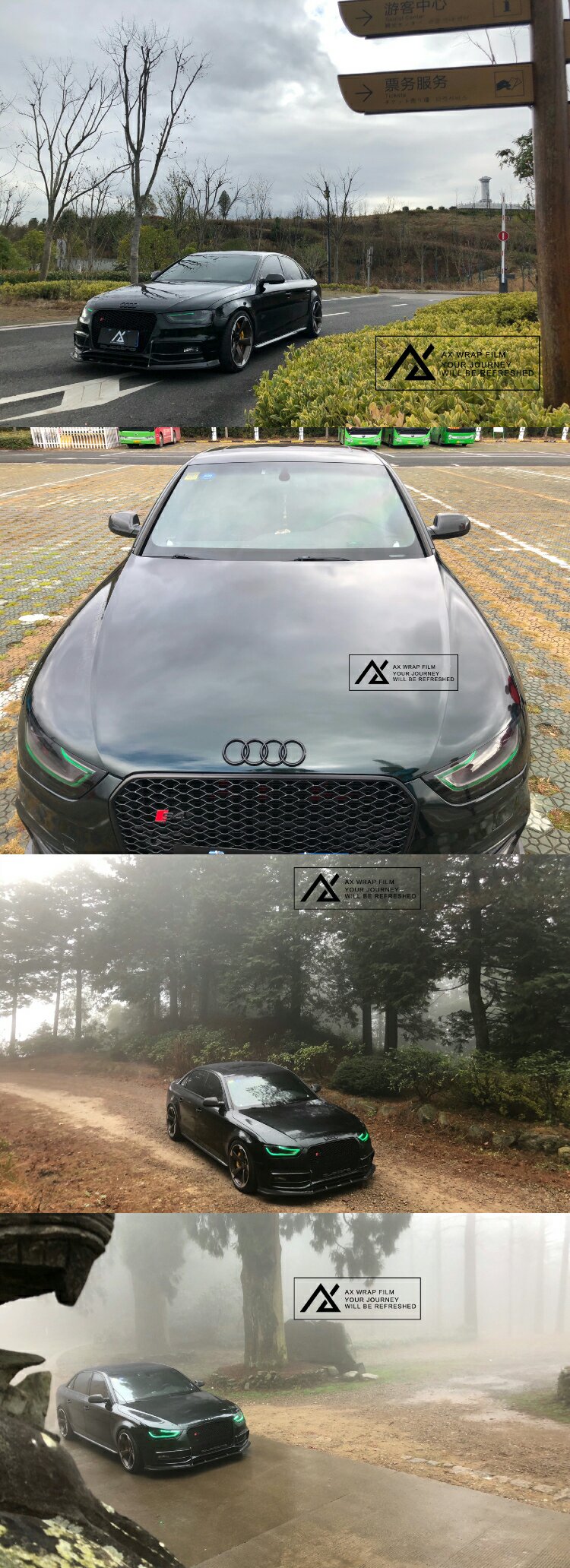 •—案例车型:𝑨𝒖𝒅𝒊 𝑨𝟰 𝑩𝟴 •—品牌:𝘼𝙓 奔驰祖母石绿 •—浙江· 𝑺𝑷𝑬𝑬𝑫 𝑷𝑨𝑹𝑲极速公园 •—拍摄场地:天台山 •—颜色特性:原厂镜面质感,低调奢华黑泛绿